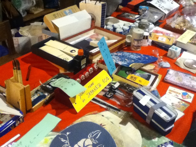 日本教室のブースでは稲荷寿司、おにぎり、 日本の小物の数々などが並んだ。 一番注目を浴びていたのは日本らしい柄のクリスマスカード。在米のみなさま、日本のご家族やご友人からクリスマスカードを受け取られた際は、 しばらくそれを味わったあと、 メッセージの書いてある内側の紙を外して、 外身のカードをとっておきましょう。 こういうときに有効活用できます。日本の皆様、きれいなクリスマスカードをぜひよろしく(?)。